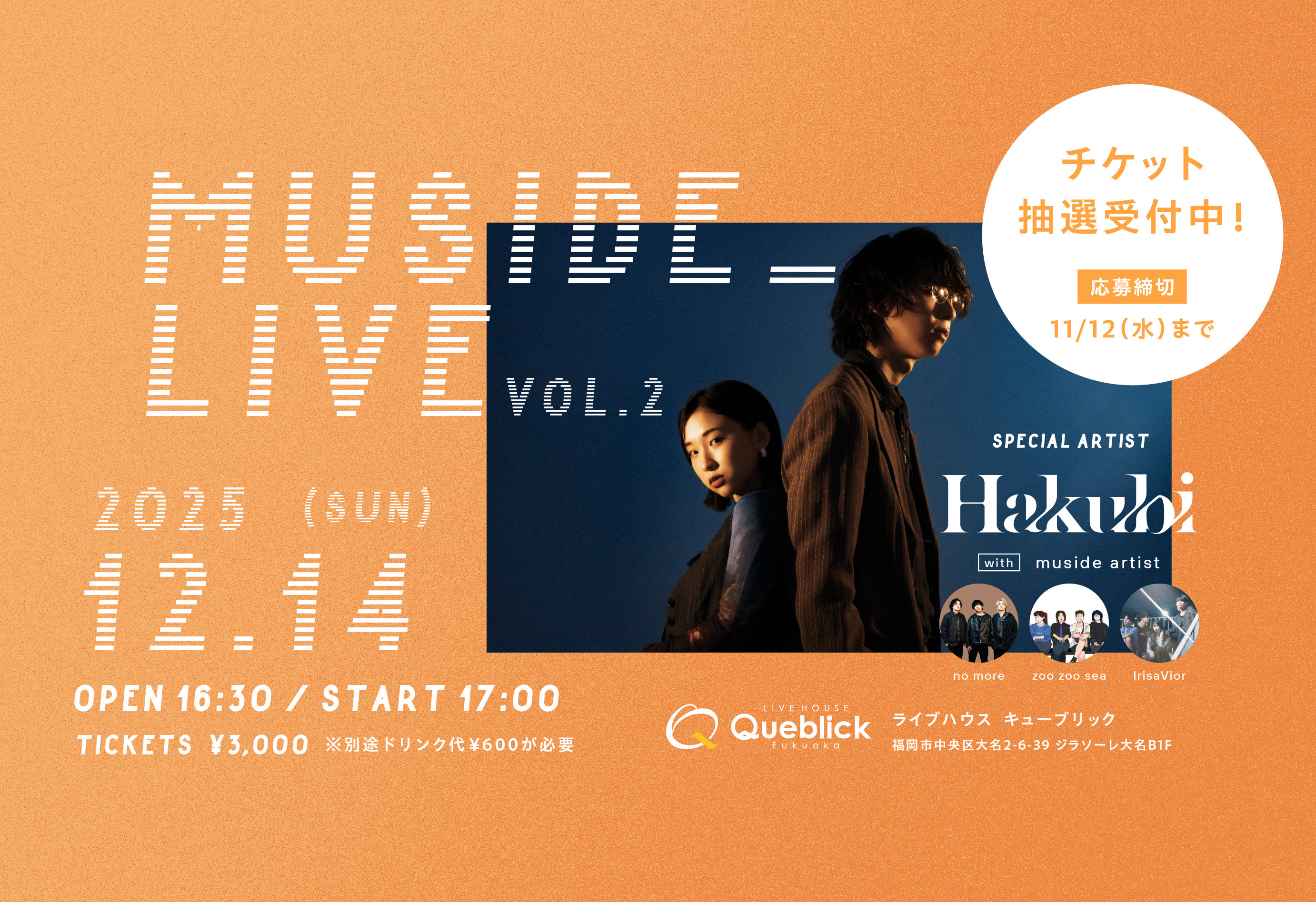 会場:LIVEHOUSE Queblick (福岡市中央区大名2-6-39 ジラソーレ大名B1F)